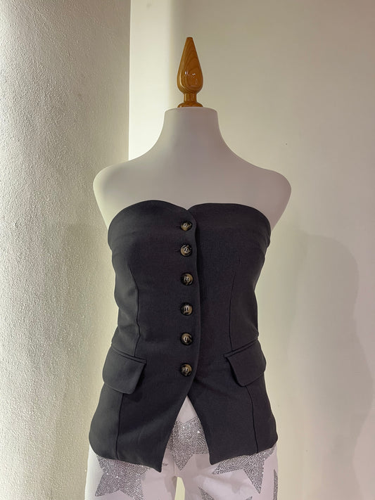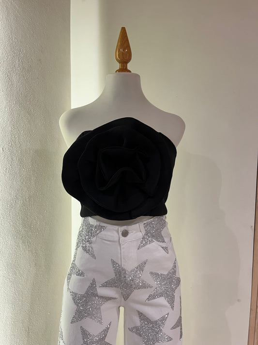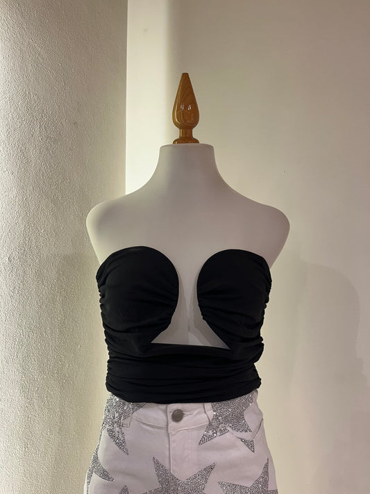 Top en tono negro con diseño platinado